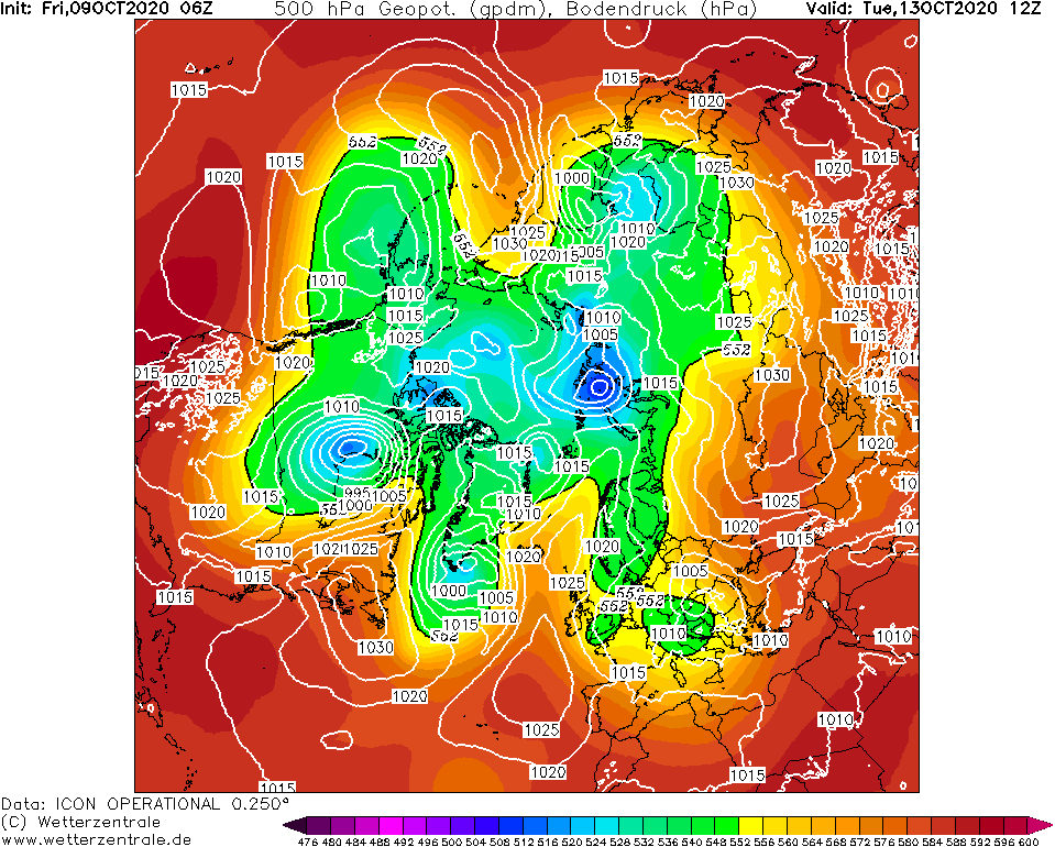 L’anticiclone si spingerà a Nord ed estenderà le sue propaggini fin su le coste della Groenlandia, portando temperature più miti a quelle latitudini. In risposta a questa configurazione barica, la depressione d’Islanda si incuneerà nel ramo discendente meridiano, raggiungendo latitudini più meridionali e apportando aria fredda perturbata sull’Europa centrale e il Mediterraneo, dando vita al deciso peggioramento previsto.