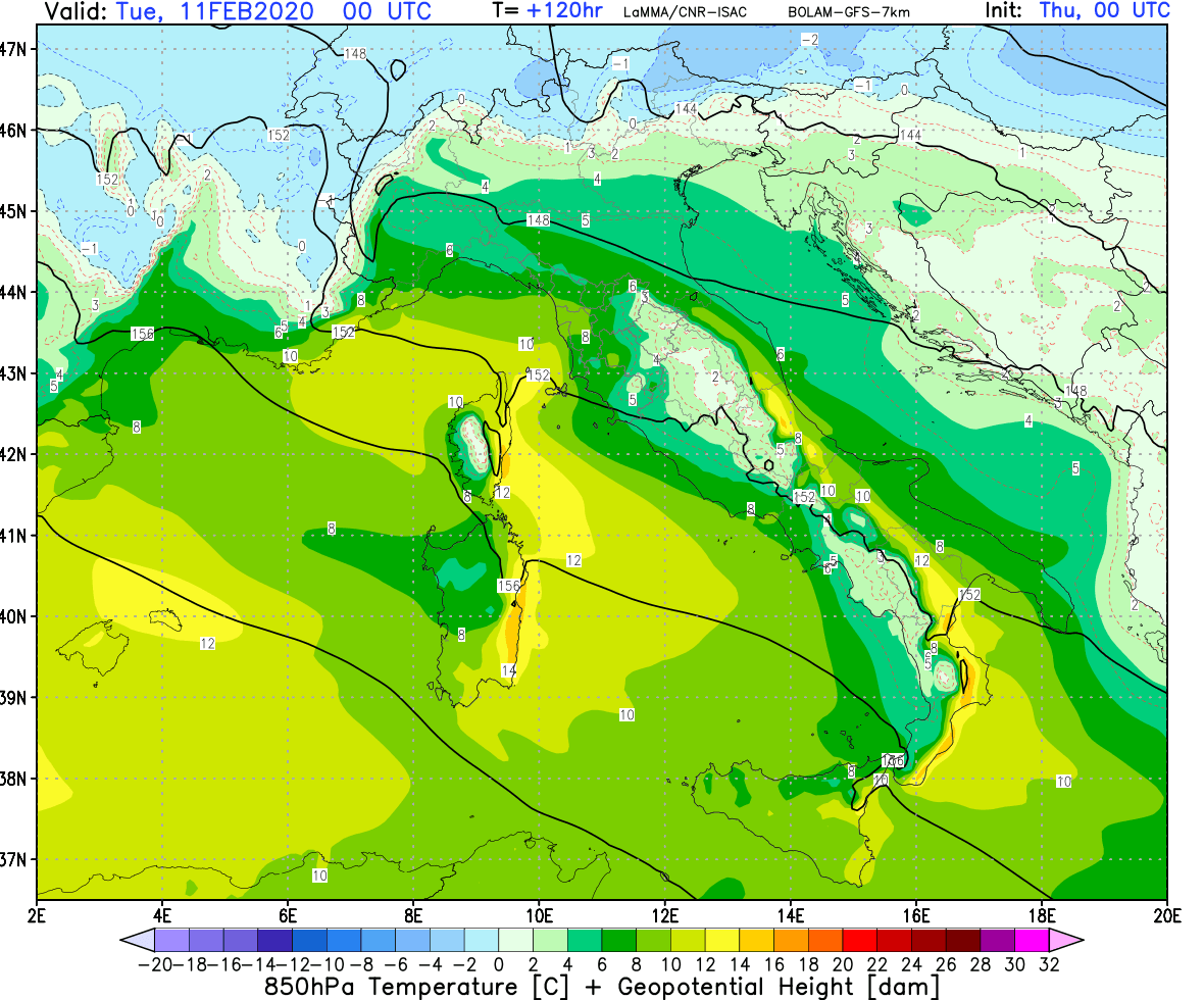 Le temperature in un primo momento si manterranno comunque basse, almeno fino al prossimo weekend (8-9 febbraio), e nelle media del periodo, permettendo gelate notturne, nelle vallate e nelle zone pianeggianti, e mantenendo comunque la neve al suolo anche lungo la catena appenninica centro meridionale.