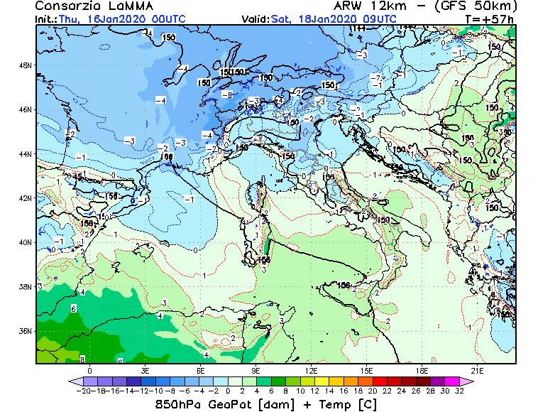 Durante la mattinata di sabato rovesci sparsi prenderanno ad interessare dapprima la Toscana nord occidentale, per poi spingersi verso sud interessando di conseguenza anche Umbria, Lazio e Marche settentrionali. L'instabilità insisterà almeno fino a sera, portando con se una sensibile diminuzione delle temperature e modesti accumuli nevosi al di sopra dei 1000/1300 metri (nell'arco dei 5 cm).