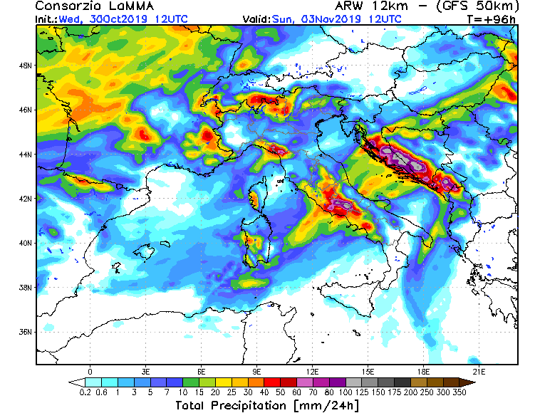 Intense ed umide correnti di libeccio, potrebbero causare accumuli anche ingenti lungo il versante Tirrenico, in particolare su Lazio, levante ligure e alta Toscana; questo anche a causa della presenza dei rilievi montuosi, che tenderanno ad esaltare, per effetto stau, i fenomeni precipitativi. Ovviamente, vista la distanza temporale, non possiamo entrare ulteriormente nel dettaglio previsionale.