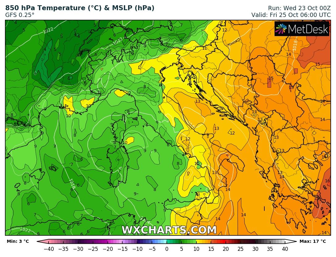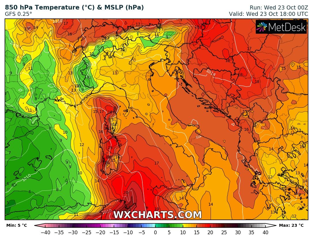 La goccia fredda non riuscirà ad impattare con la penisola italica e, dopo aver raggiunto la Sardegna, tenderà a scivolare verso sud andando a morire nel fine settimana a sud della Sicilia.