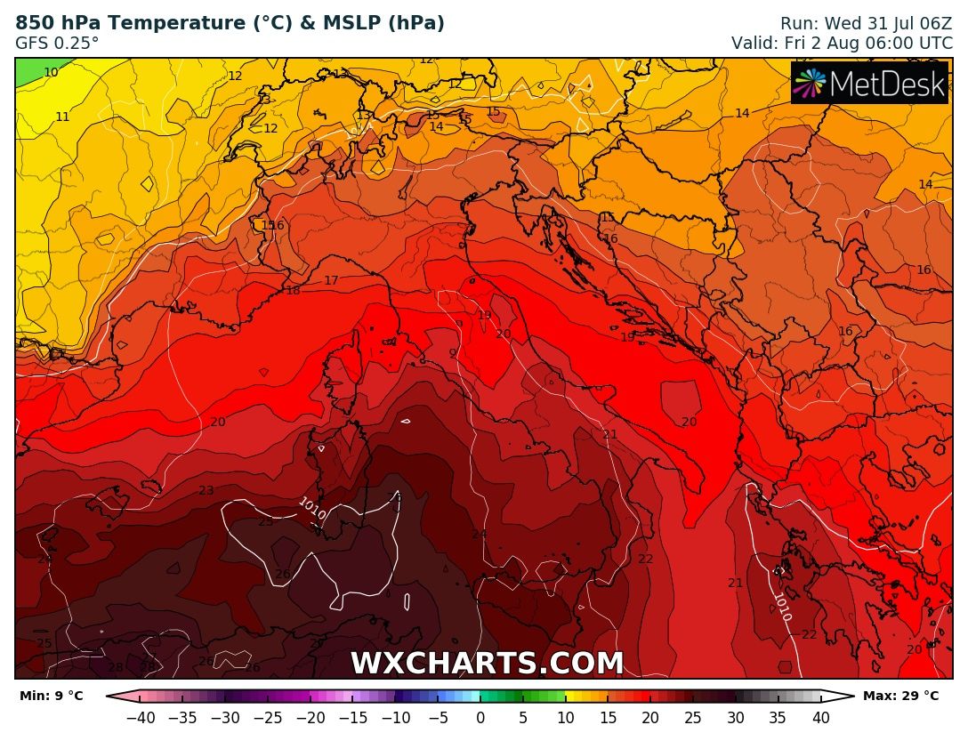 Ma come procederà, quindi, la nostra estate? Subito dopo l’ultimo ruggito africano dedicato al centro – sud Italia che ci sarà nel corso di questa settimana, in particolare tra giovedì e venerdì, a partire dalla mattinata di sabato 03 agosto avremo un rientro da nordest con venti più secchi e temperature in calo, più marcato al nordest e sulle regioni adriatiche. Nei giorni successivi, ritroveremo termiche accettabili sia in quota che al suolo, che ci faranno vivere belle giornate ventilate e nottate fresche, oltre a darci la possibilità di qualche spunto temporalesco, soprattutto nelle zone interne.