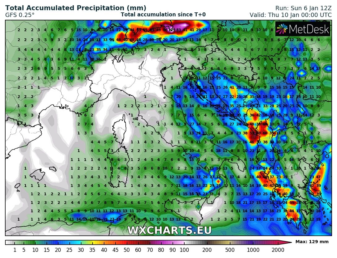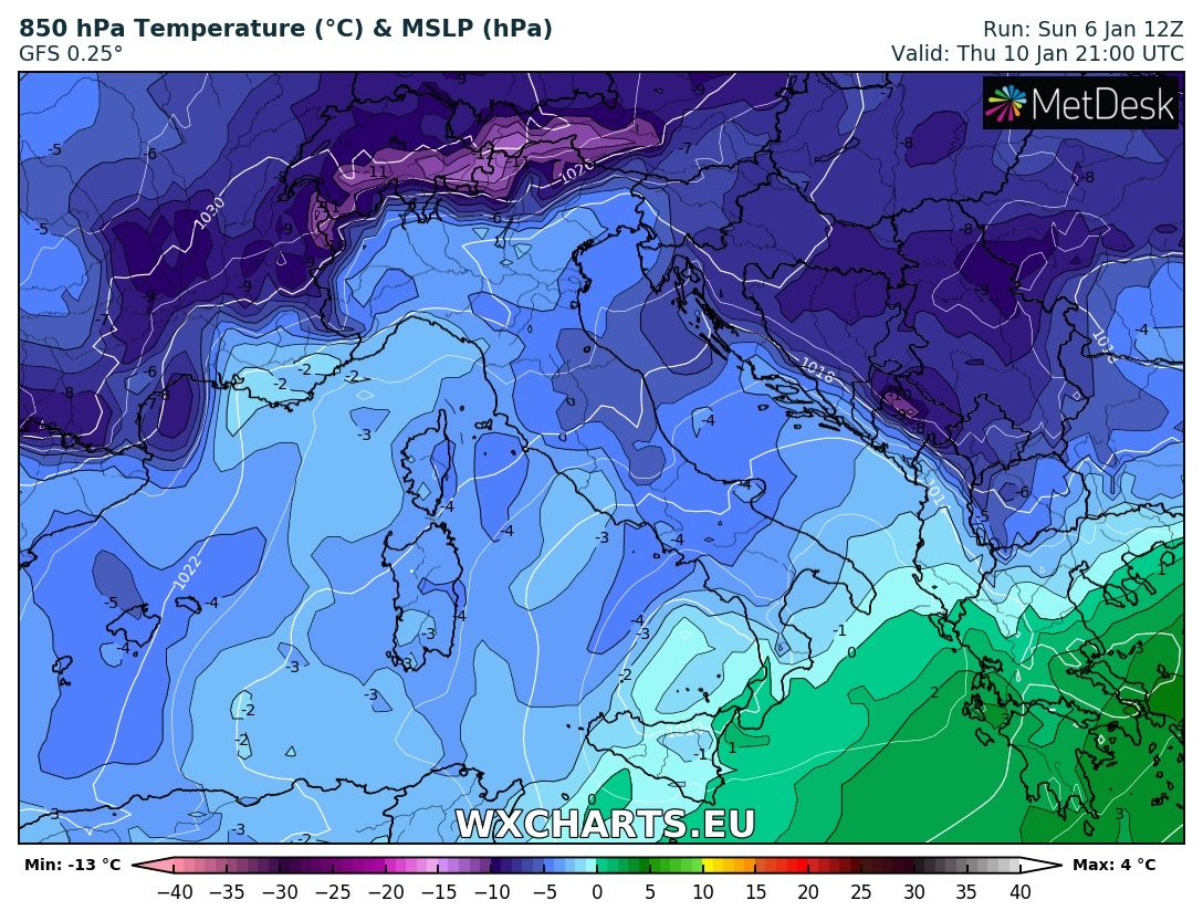 Va detto inoltre che la nostra penisola permarrà sotto lo scacco delle correnti fredde artico-continentali anche nei giorni a venire, molto probabilmente almeno fino alla metà del mese (12-15 gennaio).