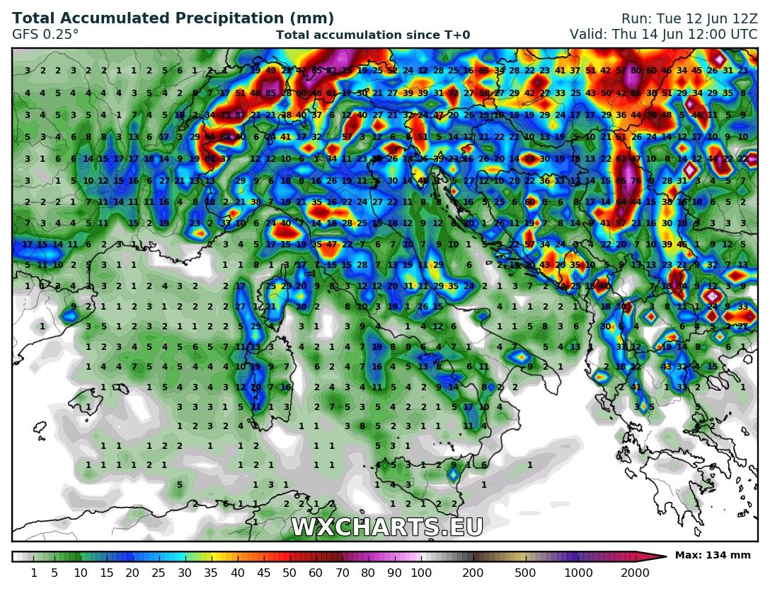 Nella giornata di domani e giovedì invece il tempo sarà molto instabile ovunque, con temporali intensi, fresco, venti in rinforzo e temperature in netta diminuzione. Attenzione durante i temporali alle possibili grandinate.