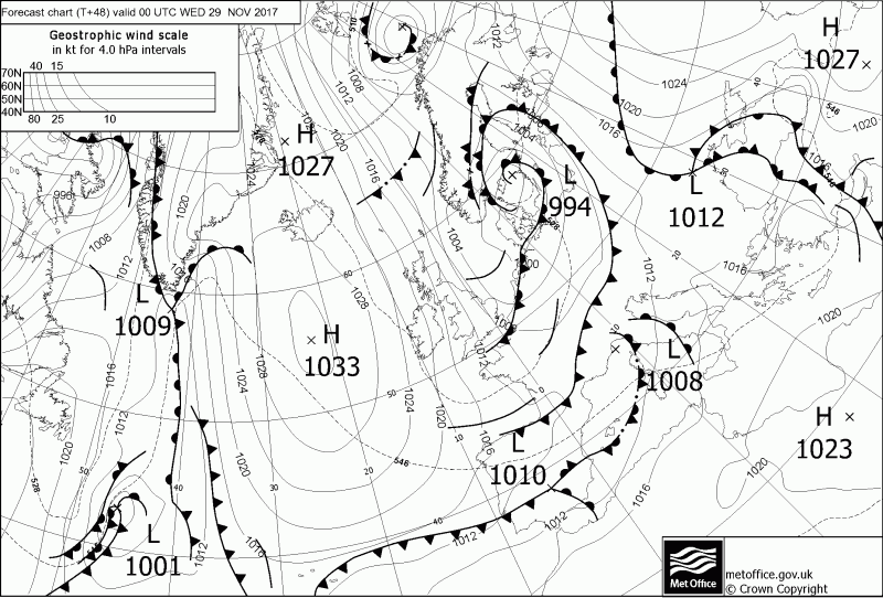 La posizione del minimo barico favorirà la rotazione della ventilazione dai quadranti meridionali, la quale permetterà alle temperature di salire di un paio di gradi, sia al suolo che in quota.