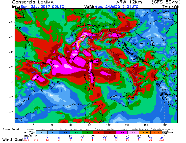 La ventilazione ruoterà dai quadranti settentrionali e assumerà intensità per lo più moderata; tuttavia prestare attenzione a possibili raffiche di forte intensità all'interno dei fenomeni precipitativi.