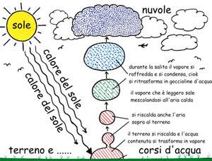 3. Poichè l'aria calda è più leggera di quella fredda, essa si solleva generando una corrente ascensionale e portando con sel'umidità contenuta.