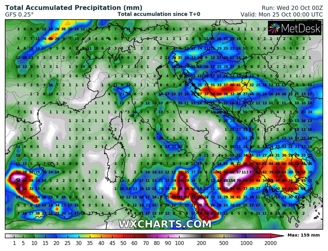 Il tempo si manterrà stabile fino alla mattinata di giovedì, in quanto, già dal tardo pomeriggio sera il cedimento dell'alta pressione dovuto alla spinta di aria più fredda di origine nord atlantica da nord, causerà un graduale peggioramento delle condizioni meteorologiche con possibili piovaschi a macchia di leopardo su Toscana, Umbria e Lazio; tuttavia a ricevere apporti precipitativi ingenti saranno solamente le zone di Massa e Carrara.