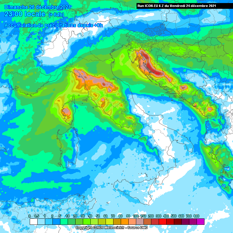 Come dicevo però non mancherà di certo la pioggia. Nell'immagine sovrastante potete consultare quelli che sono gli accumuli precipitativi previsti dalla giornata di oggi, venerdì 24 dicembre, alla giornata di domenica 26 dicembre.