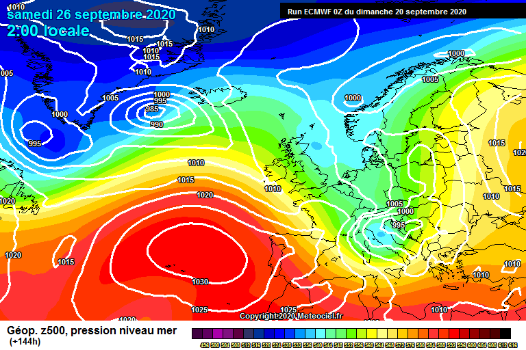 Dalla mappa è possibile notare come la spinta dell'anticiclone delle Azzorre verso nord est garantirebbe, dal 26-26 del mese, la discesa di aria più fredda verso la nostra penisola, in grado di dar vita ad vasta area depressionaria in sede mediterranea.