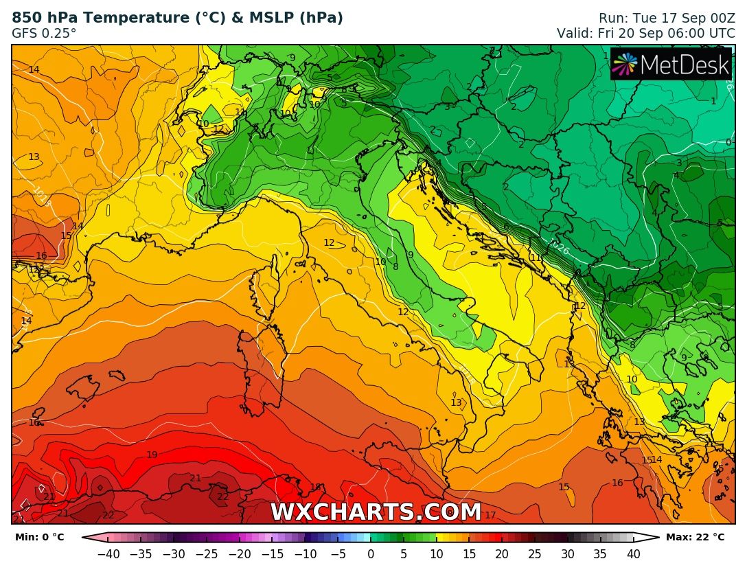 Le temperature si abbasseranno ovunque di 2-4°c, riportandosi cosi nelle medie del periodo o leggermente al di sotto di esse.