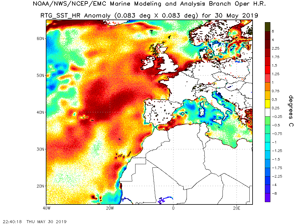Oltre tutto questo c'è da segnalare che il Mar Mediterraneo ovviamente ha risentito enormemente di questo lungo periodo instabile, il quale non gli ha permesso di riscaldarsi come solitamente avviene a partire dal mese di maggio.