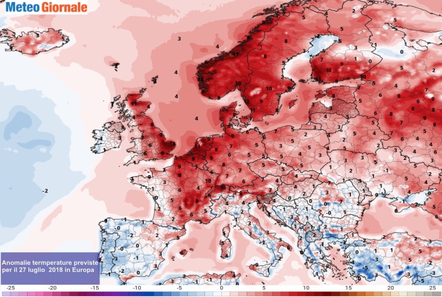 Il respiro caldo Africano ha investito Spagna, Francia, Benelux, Germania fino a spingersi ancora in Scandinavia. Proprio sulla penisola Scandinava si sono registrati valori record, con le temperature massime che nelle ore diurne hanno raggiunto e superato i 35°c.